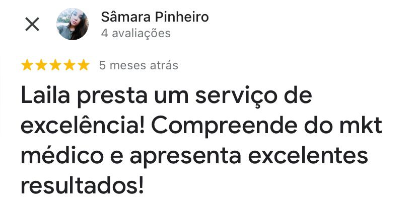 Me chamo Laila Blanco, sou especialista no mercado da saúde a 8 anos e já ajudei mais de 50 clínicas a aumentar seus resultados através do marketing digital.